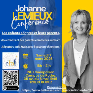 • à la ligne nationale d’écoute destinée aux familles: 01 40 05 57 79 – Informations sur: www.adoptionefa.org ;